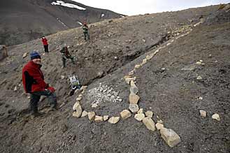 El equipo de investigadores no ha podido por ahora encontrar más que un cráneo despedazado de pliosauro, que afloraba en la superficie, y ha llevado los fragmentos a Oslo para reconstruirlo.