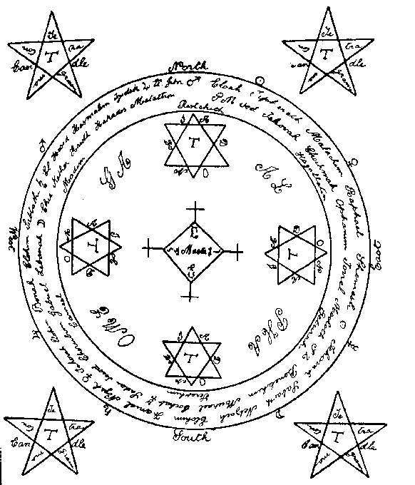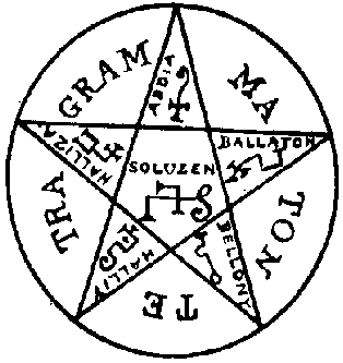 BEHOLD thy confusion if thou refusest to be obedient! Behold the Pentacle of Solomon which I have brought here before thy presence! Behold the person of the exorcist in the midst of the exorcism; him who is armed by GOD and without fear; him who potently invocateth thee and callth thee forth unto appearance; even him, thy master, who is called OCTINIMOS. Wherefore make rational answer unto my demands, and prepare to be obedient unto thy master in the name of the Lord:BATHAL RUSHING UPON ABRAC! ABEOR BECOMING ABERER!