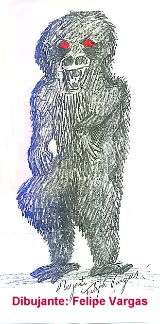 Luis’s son-in-law, a truck driver with an erratic schedule, could not believe what he was seeing on the road in June 2006 near midnight between a stretch of road from Los Angeles to Muchén. On that day he wasn’t carrying an assistant, so there are no other witnesses to his observation. But he does remember driving at an average speed without any further remarks. Suddenly, on a particular stretch of road on which no other cars were present, he noticed that there was a strange animal on his right, on the blacktop. It was very still and had the appearance of an ape, with short arms and long legs. He managed to hit the brakes about 10 meters from this animal, but the simian creature did not make a move and slowly turned its head toward the truck. That’s when the driver noticed that its eyes were sparkling red, and that the configuration or fur on its body was very odd, covered by something similar to short whitish feathers.