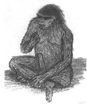 Impression of a Barmanu, observed in 1987 by the Pakistanese shepherd Lal Khan. Drawing by Jordi Magraner. Since 1988, Jordi Magraner, a Spagnard living in France, is investigating upon Barmanou, the wild man of the Hindou Kouch (Chitral district, northern Pakistan, and eastern Afghanistan). Il collected dozens of witnesses.