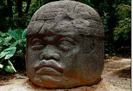 One of the huge Olmec sculptures found at La Venta - This head is approximately 6 feet tall and 5 feet across. The stone it was cut from was quarried more than 50 miles from where it was discovered, prompting speculation about how it was transported.