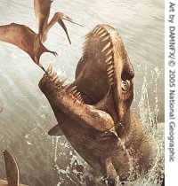 The National Geographic Society in Washington, which sponsored the research, says dakosaurs were only one of the monsters that cavorted in the world's oceans between 250 million and 65 million years ago. Back then shallow seas and a lack of significant marine predators created new opportunities for many reptiles that had first developed on land. They included such beasts as giant ichthyosaurs that might have reached 25 meters in length and plesiosaurs with seven-meter-long necks reminiscent of the fabled Loch Ness monster in Scotland.