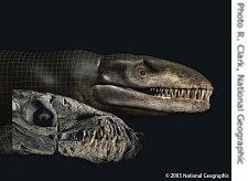 What has a head like a meat eating dinosaur and a tail like a fish? An ancient sea reptile called a dakosaur.