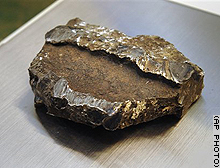 The object -- a grayish metallic rock about the size of a deck of cards.