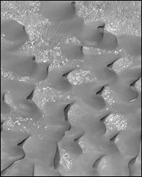 She found that the regions containing sand dunes in the planet's northern hemisphere contained perhaps 40-50% water by mass.