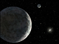 Its exact size is difficult to measure, being small and faint; Brown's team, using the Hubble telescope, found the object's diameter to be just 70km bigger than Pluto's. Another team, using a radio telescope in Spain, has measured Eris to be some 700km larger than Pluto.
