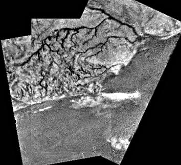 "We had great difficulty obtaining these pictures. We had only one percent of the illumination from the sun, we're going into a very thick atmosphere with lots of haze that blocks light from penetrating to low levels, and we're taking pictures of an asphalt parking lot in dusk situations, and trying to stretch the contrast. So to a human eye, those dark regions would be very black. But there are bright regions as well, the hills, for example - those are significantly brighter. I think that's because the dark material has washed off the top of those hills, and has now been concentrated into the river channels and into the low lying regions where the liquid finally dries out and leaves the dark organic material concentrated." - Martin Tomasko Click image for larger view. Credit: ESA