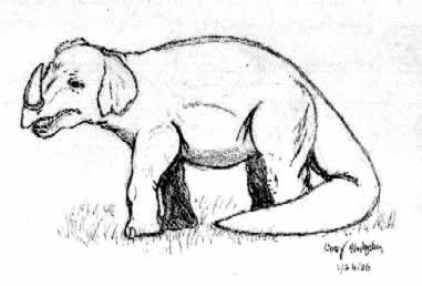 In 1981, Dr. Roy Mackal while searching the Congo for the Mokele-mbembe, collected accounts of these Emela-ntouka. The natives in the northwest region of the Likoula (per the M’boshi and French, but Likouala in most English text) swamp told him that this animal would gore elephants with its single horn. Mackal initially considered that Emela-ntouka might be a Centrosaurus (”pointed lizard”) of the Ceratopsian family (formerly the Monoclonius). But he also noted the pygmies did not report a neck frill, which he would have expected on a ceratopsian.
