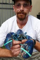 The 1 1/2 -pound clawed creature is bright blue, the result of an extremely rare genetic mutation.